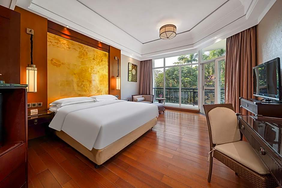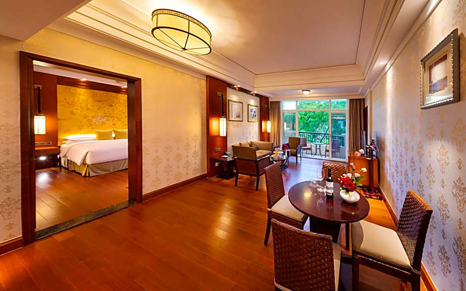 This suite has a seating area, bathrobe and electric kettle.